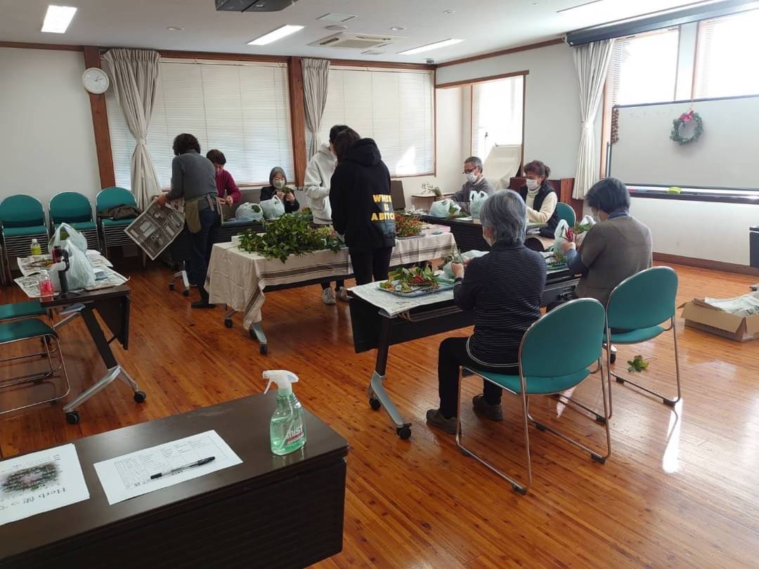 11名が参加してクリスマスの飾りにぴったりのリース作りを楽しみました。
